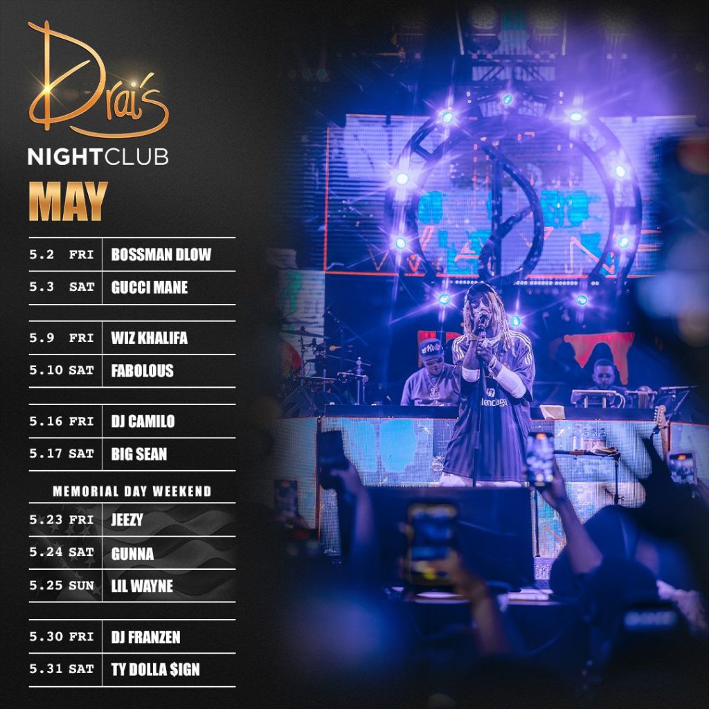 All month with incredible artists, including, Lil Wayne, Wiz Khalifa, Ty Dolla $ign, and more at Drai’s Nightclub Las Vegas. Join guest list free by texting 702-929-4946