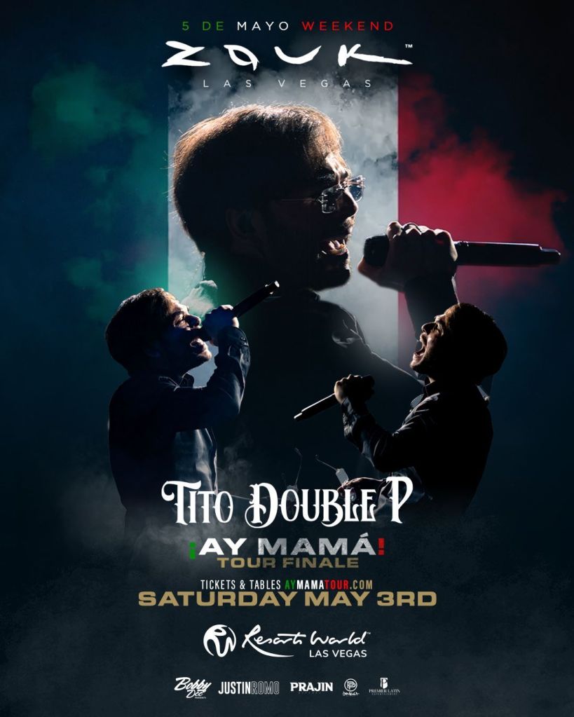 Tito Double P Ay Mama tour continues at Zouk Nightclub on May 3rd, right on time for Cinco De Mayo weekend. LADIES ONLY guest list text 702-929-4946