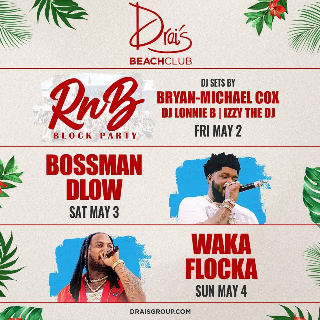 R and B Block party, Waka Flocka,and Bossman Dlow at Drai’s Beach this weekend. Free guest list text 702-929-4946