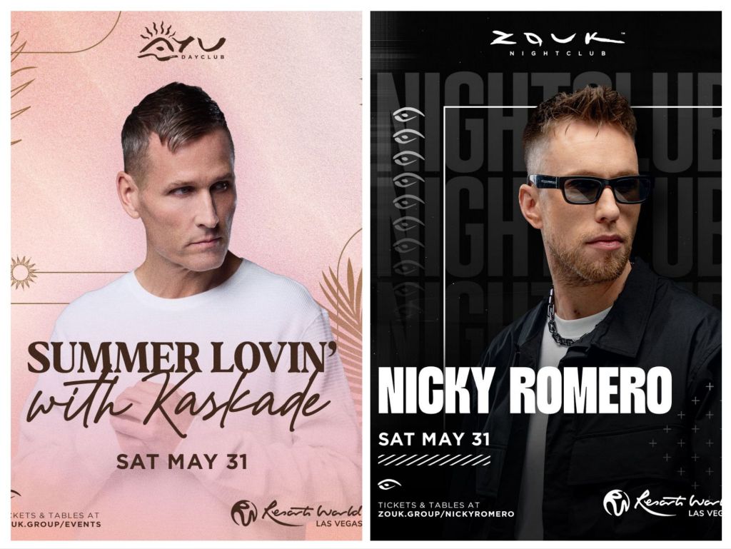 Start this hot day with Kaskade at Ayu Dayclub and tonight with Nicky Romero at Zouk Nightclub. Both are FREE with drinks on the guest list text 702-929-4946
