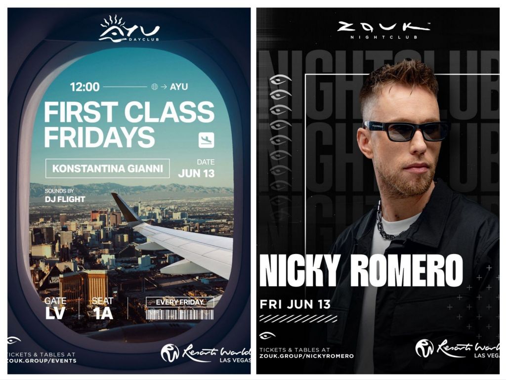 Free event today. Right Class Fridays with Konstantina Gianni and DJ Flight at Ayu Dayclub and Nicky Romero at Zouk Nightclub tonight. Both free entry guest list text 702-929-4946