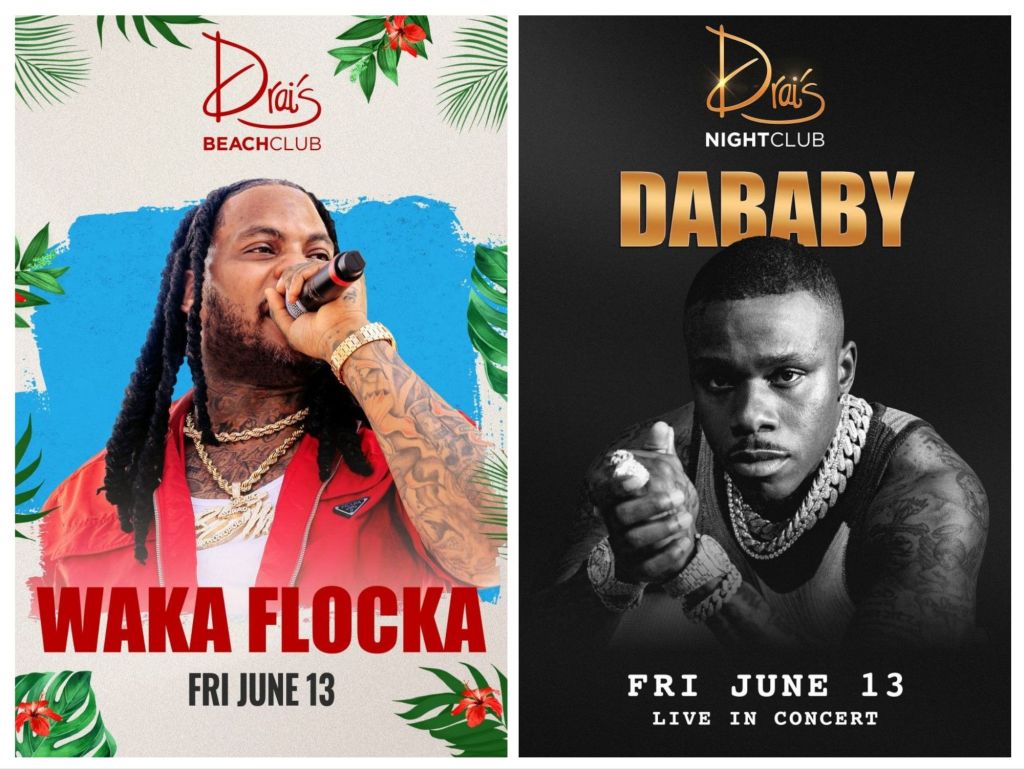 Waka Flocka and DaBaby have live performances on the rooftop of Drai’s Nightclub and Beach today. For Free Guest List text 702-929-4946