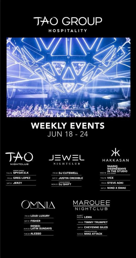 The pool season is here and Tao group got the line up you need. No money needed to add on Guest List text 702-929-4946