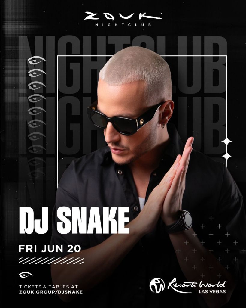 The one and only DJ Snake returns to Zouk Nightclub tomorrow in Vegas. Free Guest List text 702-929-4946