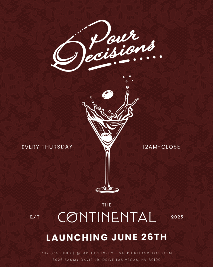 I’m here proud to announce the opening of the Continental Lounge located inside of Sapphire this Thursday, June 26th, starting at 12 you’ll be able to get FREE ride, entry and drink with guest list text 702-929-4946