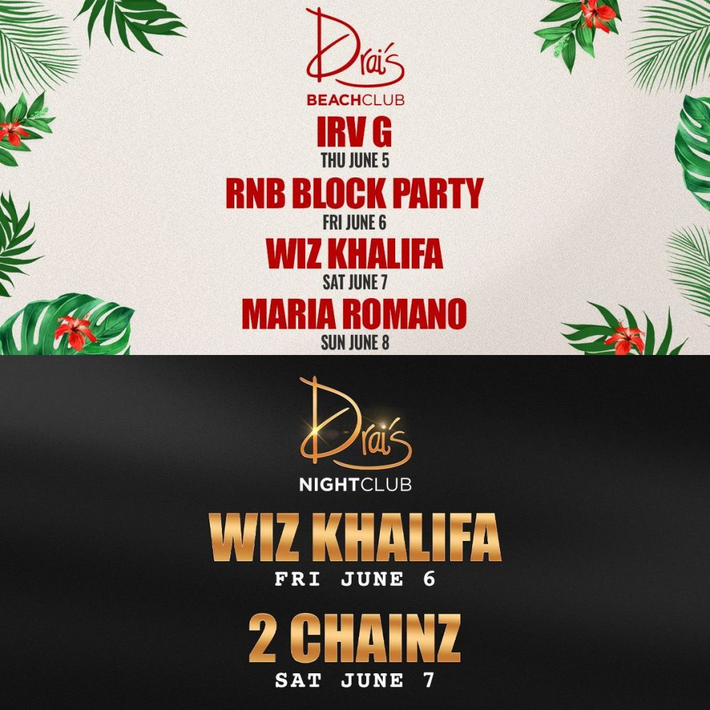Your weekend line up at Drai’s has come with Wiz Khalifa, 2 Chainz and more. Free Guest List text 702-929-4946