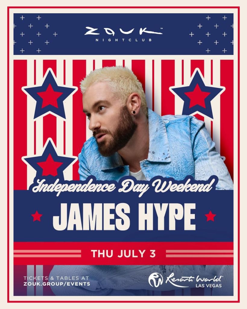 Free party at Zouk Nightclub with James Hype on the set for the beginning of 4th of July weekend. Free entry and drinks* text 702-929-4946