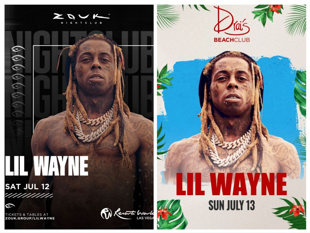 Lil Wayne Vegas take over at Zouk Nightclub tonight and Drai’s Beach tomorrow. Free entry to both events on guest list text 702-929-4946