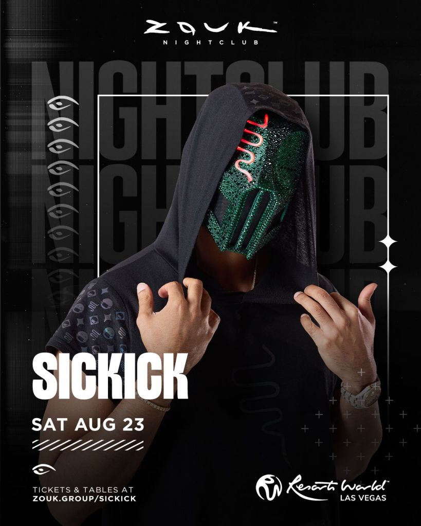 Don’t miss out on Sickick live set at Zouk Nightclub this Saturday night. Free entry Guest List text 702-929-4946