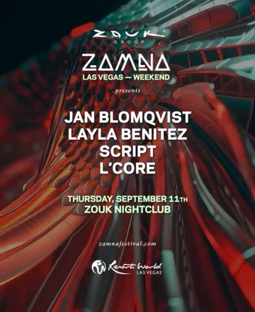 L’core, Layla Benitez and much more for Zamna weekend at Zouk Nightclub tonight. Free entry Guest List text 702-929-4946