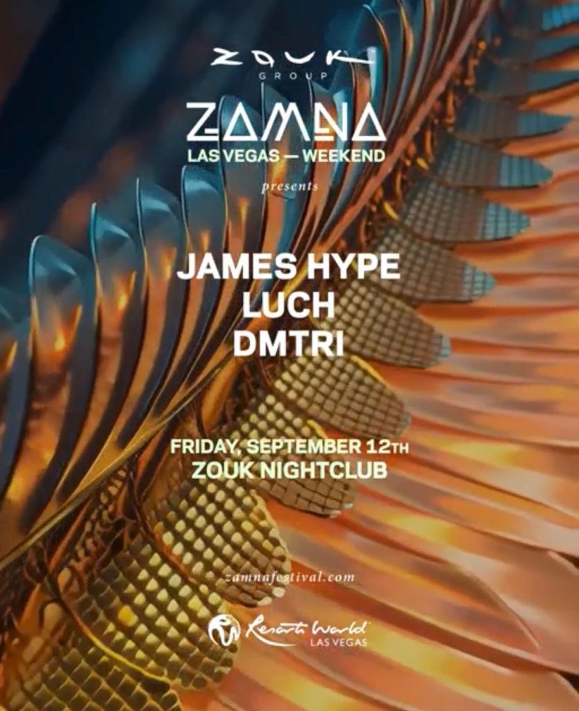 Dmtri Luch and James Hype are set for Zamna weekend at Zouk Nightclub tonight. Ladies open bar and all is Free entry with Guest List text 702-929-4946