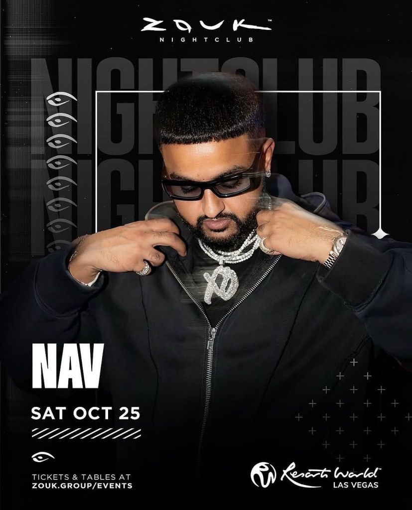 This Saturday we have Nav live at Zouk Nightclub. For tables or Free entry Guest List text 702-929-4946