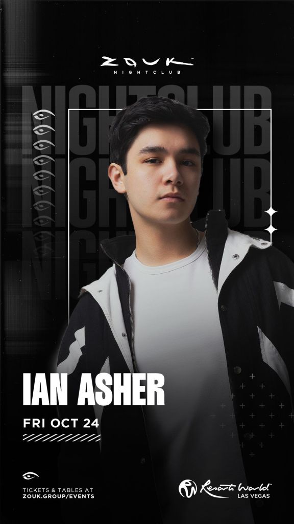 Ian Asher live tonight at Zouk Nightclub. For tables or Free entry Guest List text 702-929-4946