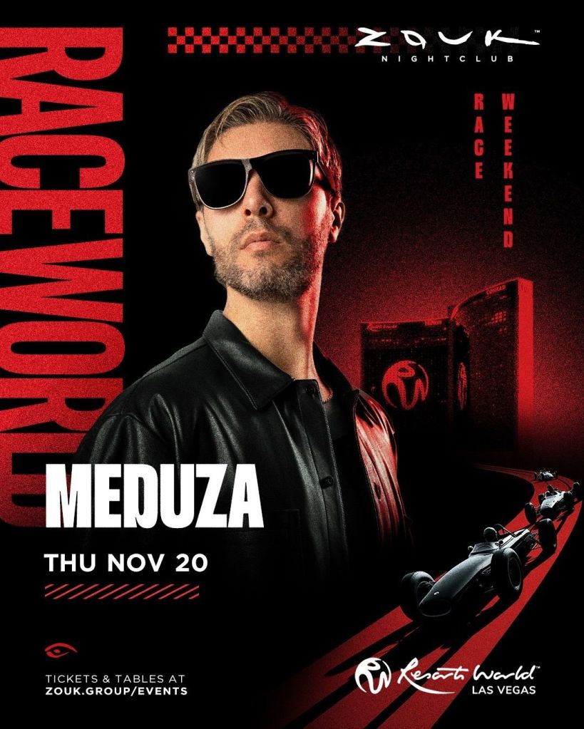 F1 has arrived in Las Vegas and the real party starts tonight with Meduza on set at Zouk NightClub. For Table service or Free Entry guest list, text 702-929-4946